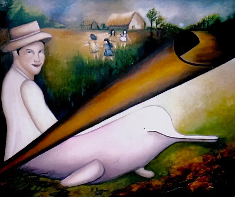 Die Legende des rosafarbenen Delfins, der im Amazonasfluss lebt und Boto genannt wird, ist eine der bekanntesten. Man erzählt sich, dass sich der rosafarbene Delfin während der Junifeste, in Vollmondnächten, in einen eleganten jungen Mann verwandelt und die Dörfer am Flussufer besucht. Er verbringt den Abend tanzend, verführt Frauen, ist weiß gekleidet und trägt einen breitkrempigen Hut, um seine große Delfinstirn zu verbergen.